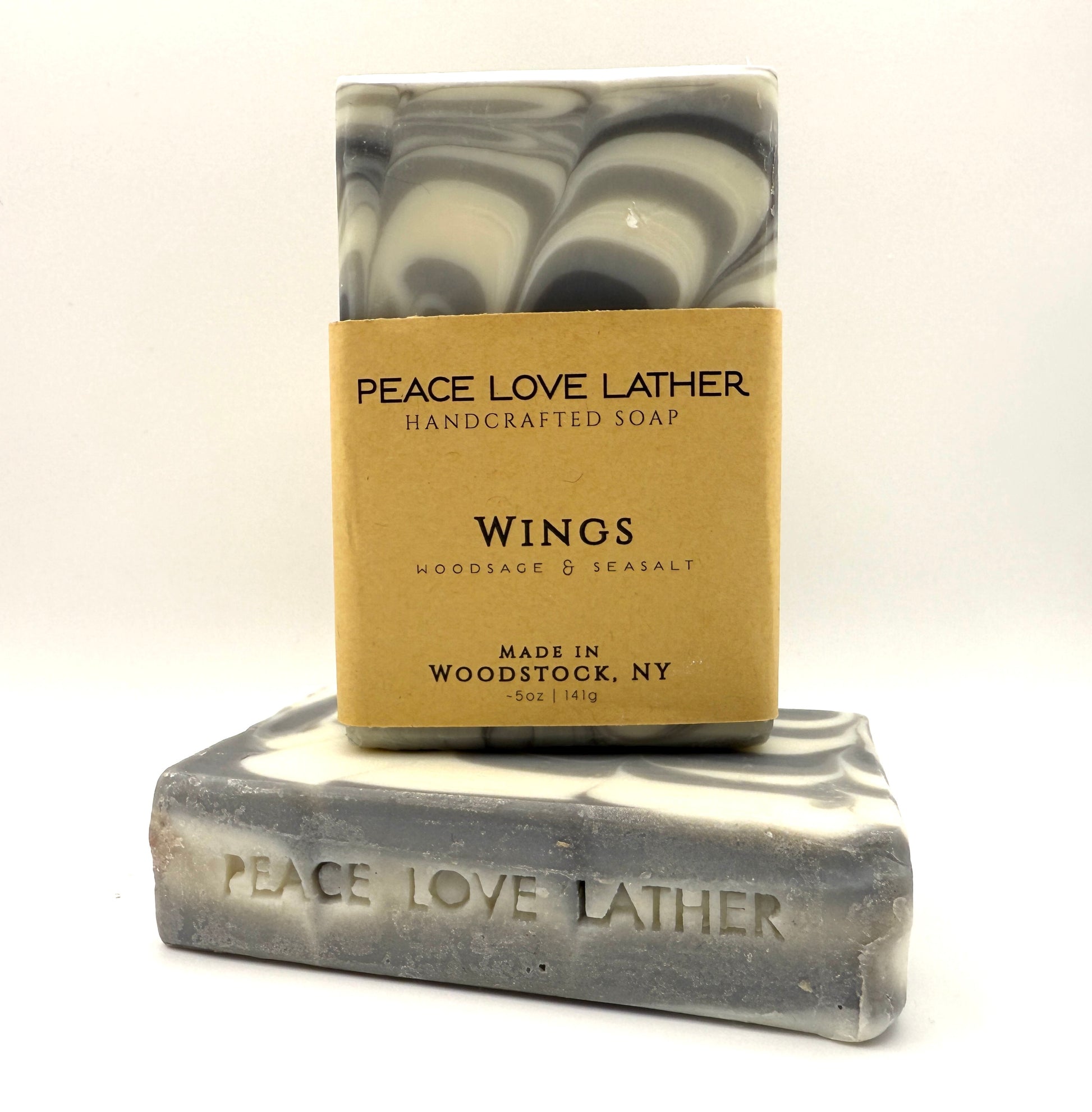 These feathery designed soaps are Inspired by our rescue chicken's feathers, this soap is based on our beautiful Sweetums! It creates a rich, creamy lather that gently cleanses while nourishing the skin. A balanced blend of plant oils and butters leaves your skin feeling soft, smooth, and refreshed. The crisp, earthy fragrance of Woodsage & Seasalt adds a natural, coastal-inspired aroma that is both grounding and invigorating.
